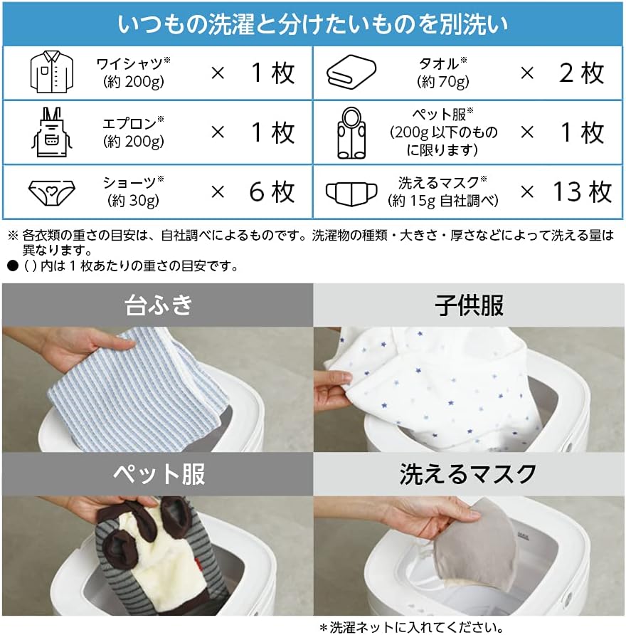 洗濯可能容量(約):0.2 kg