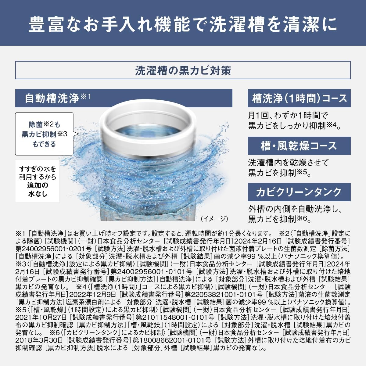 運転音:洗い 約32dB / 脱水 約39dB
