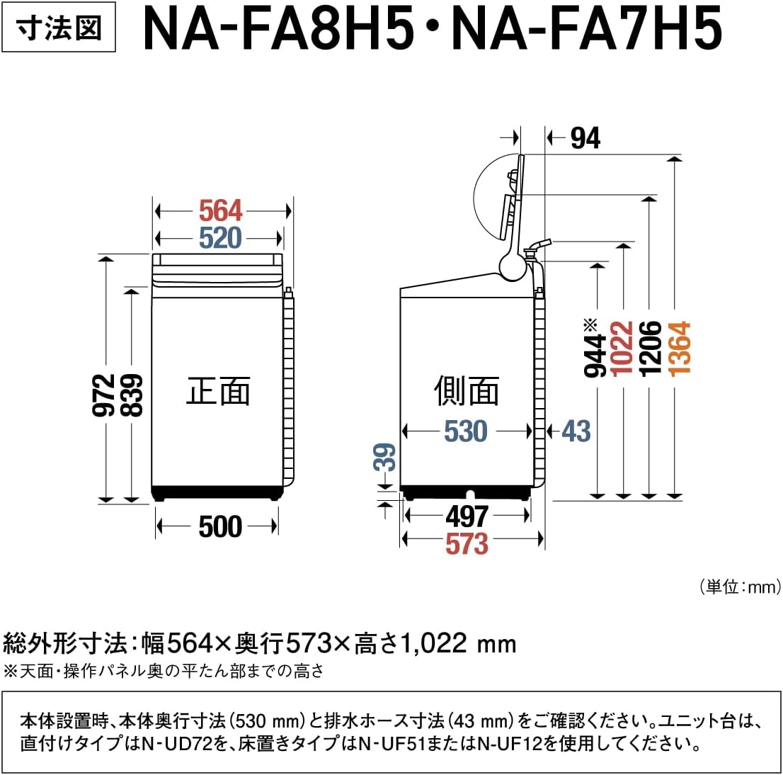 幅564×奥行き573×高さ1022mm