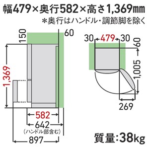 幅479mm x 奥行き582mm x 高さ1,369mm