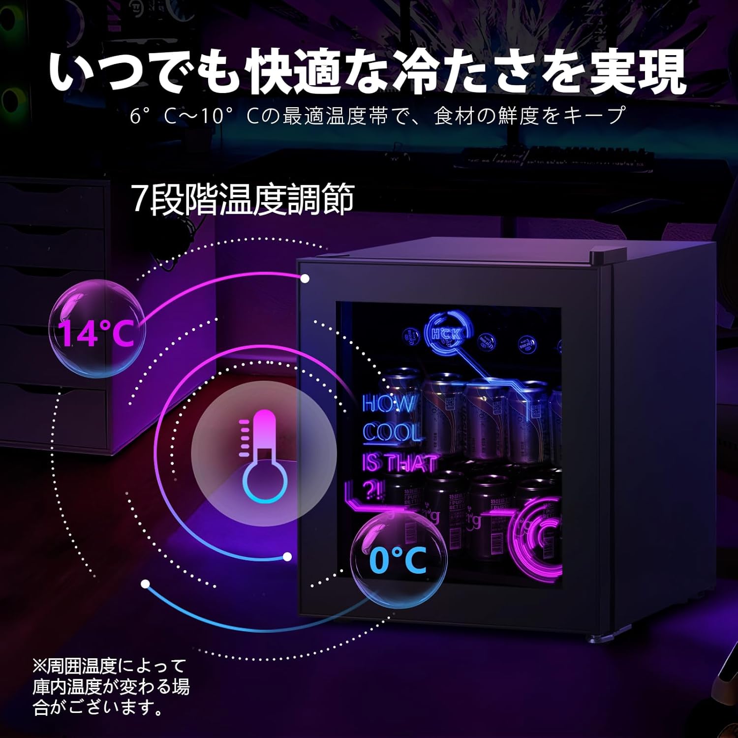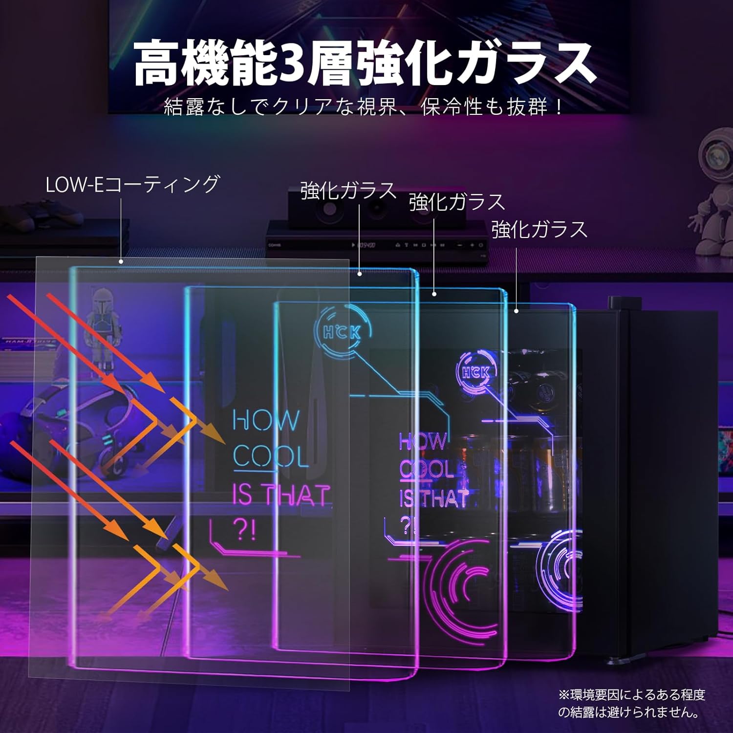 ドリンクや軽食をすぐ手に取れる、コンパクトサイズのゲーミング冷蔵庫です。