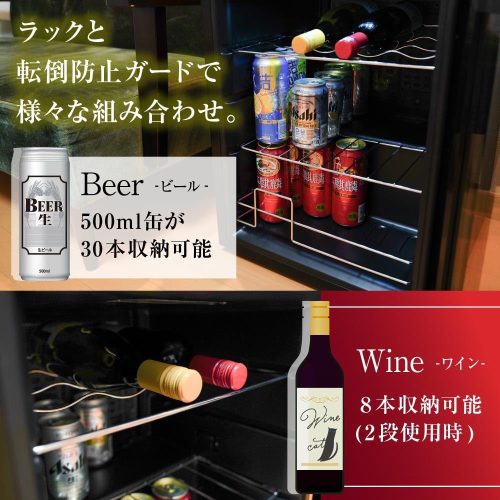 ボトルを立てたまま収納できる広めの庫内で、一升瓶もすっきり。