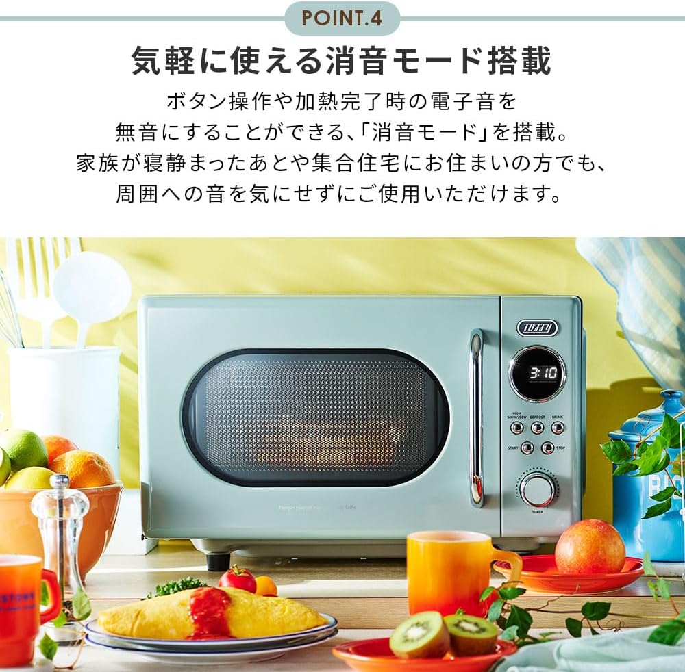 見た目だけでなく操作も簡単で、日々の“あたため時間”がちょっと楽しくなる電子レンジです。