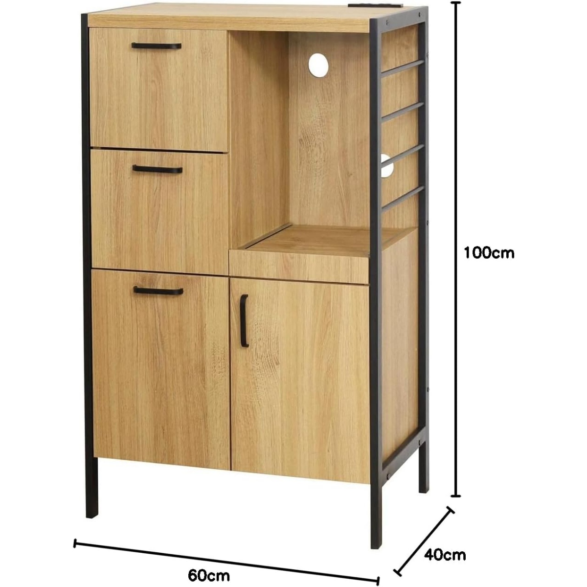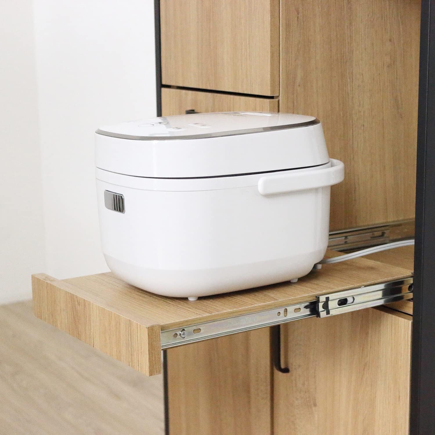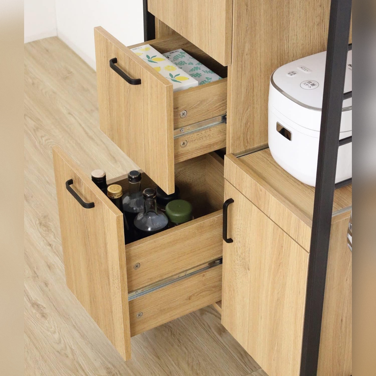 収納力も抜群で、キッチンまわりをすっきり整理できる、実用的でスタイリッシュな食器棚です。