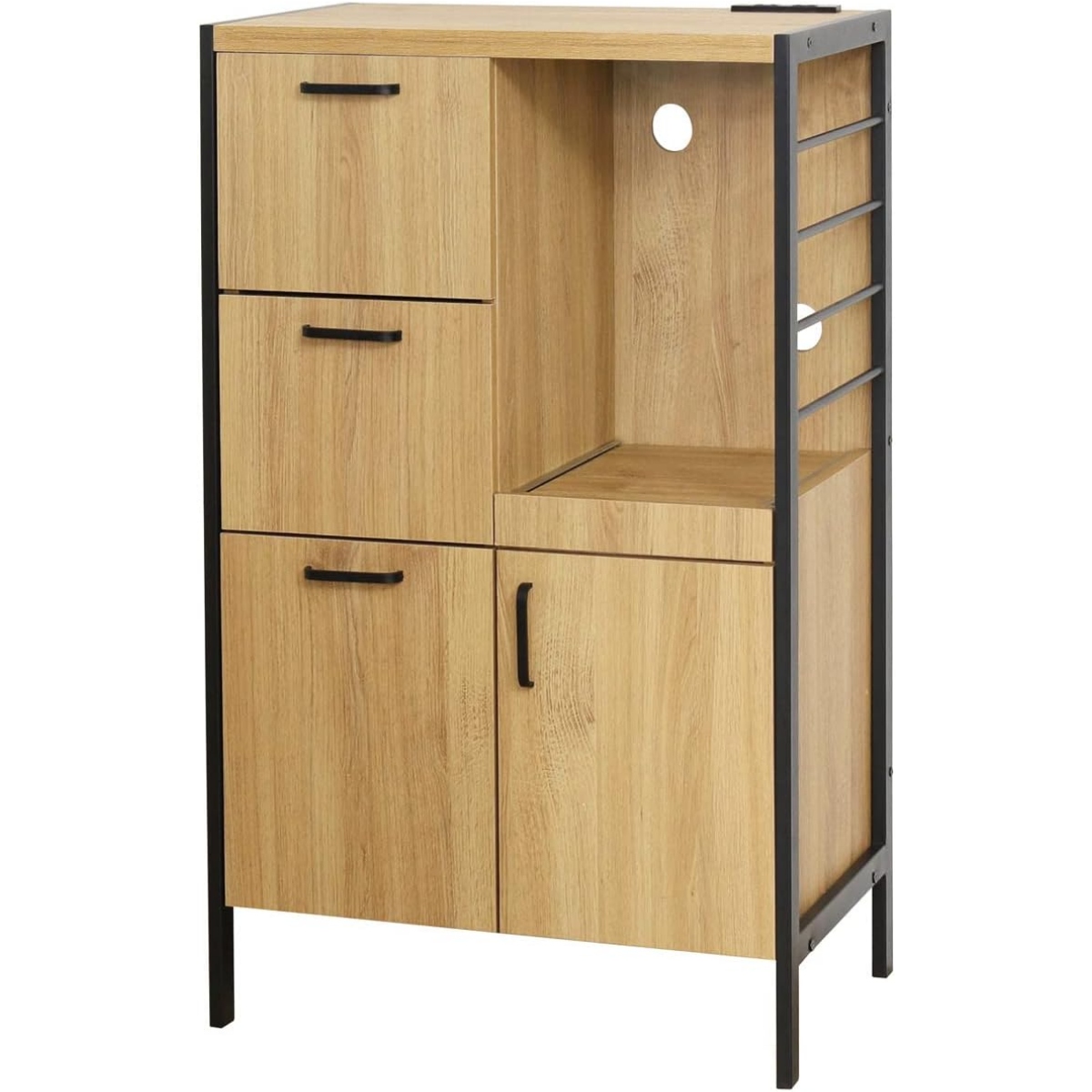 棚板と引き出し付きで、食器や調理器具をまとめて収納できる食器棚。