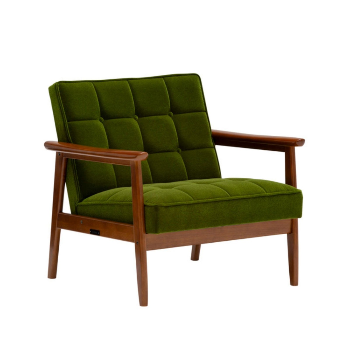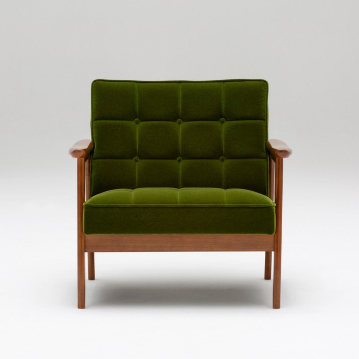 落ち着いたモケットグリーンの張地が空間に馴染み、リビングや書斎でゆったりくつろげます。