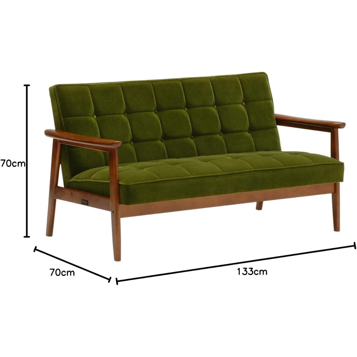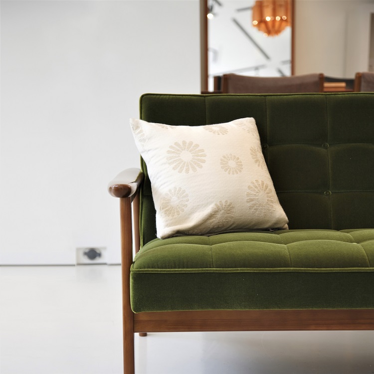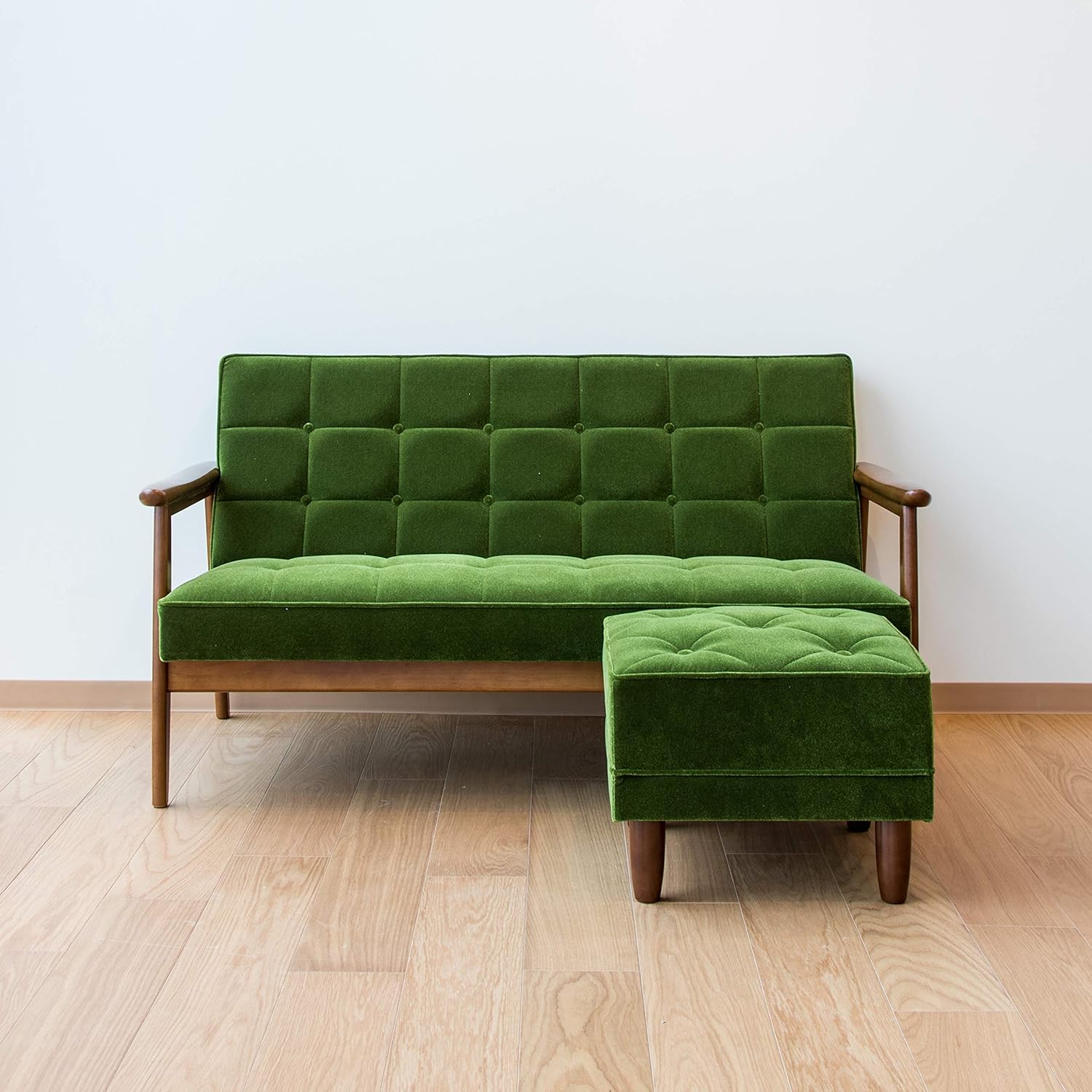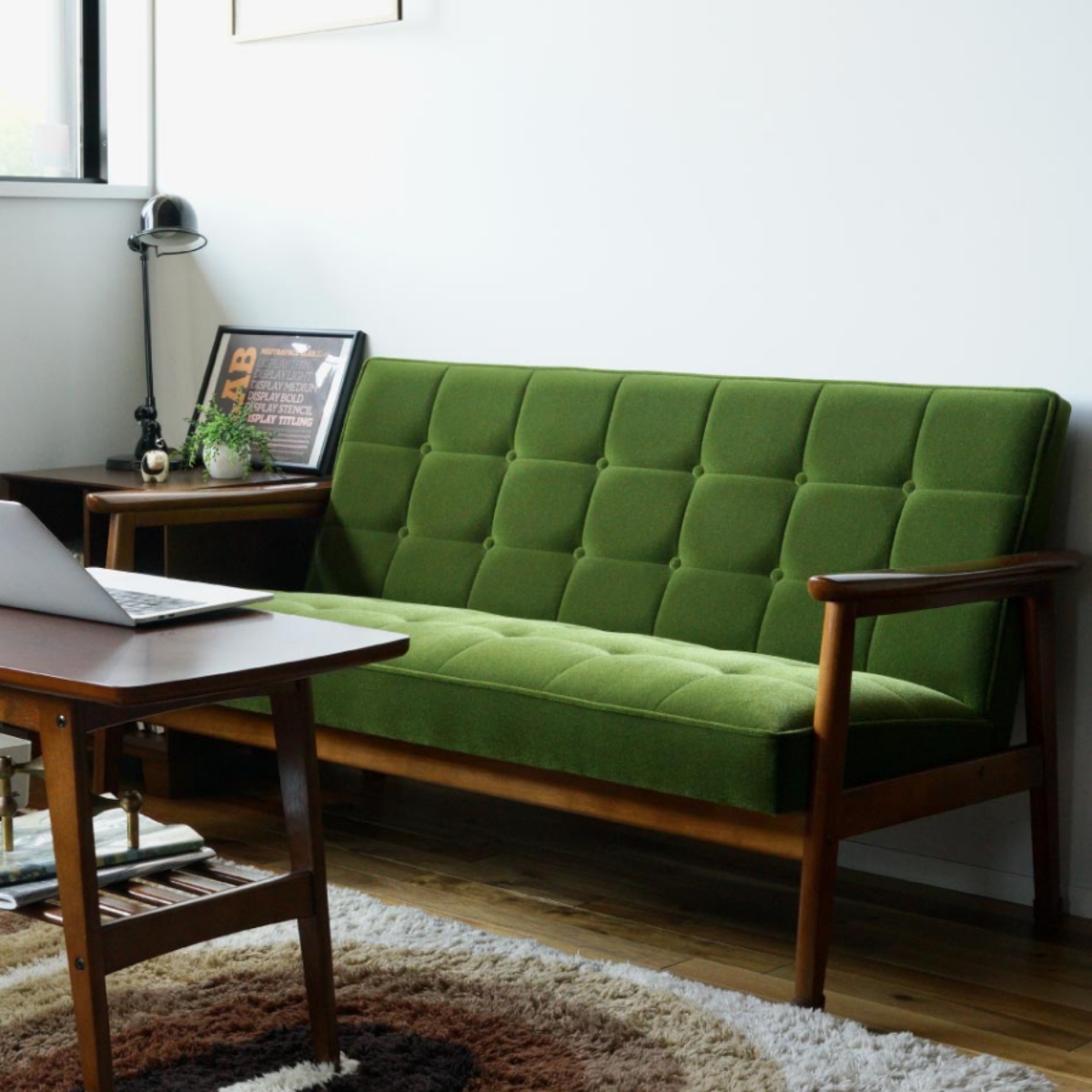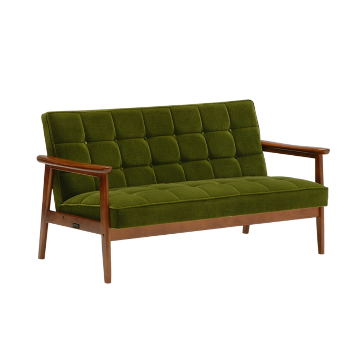 モケットグリーンの張地が印象的なKチェア(2人掛け)。