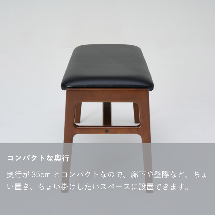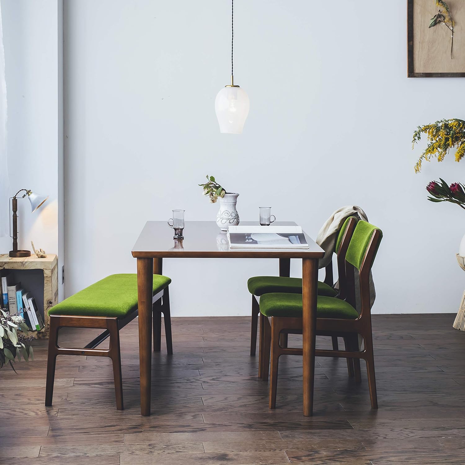 上質なモケットグリーンの張地が印象的なダイニングベンチ。