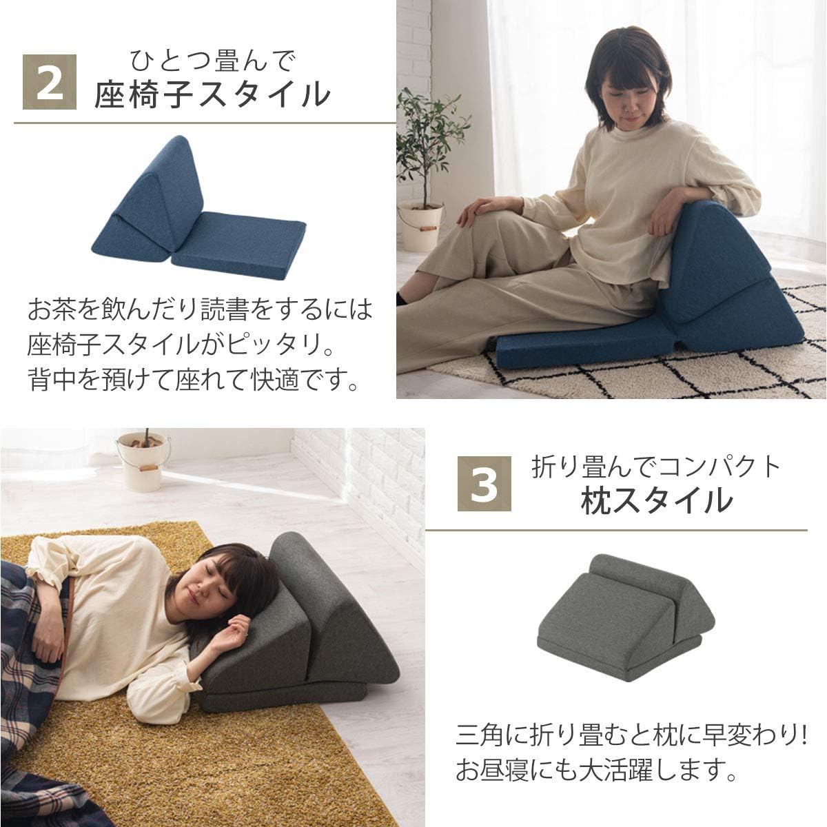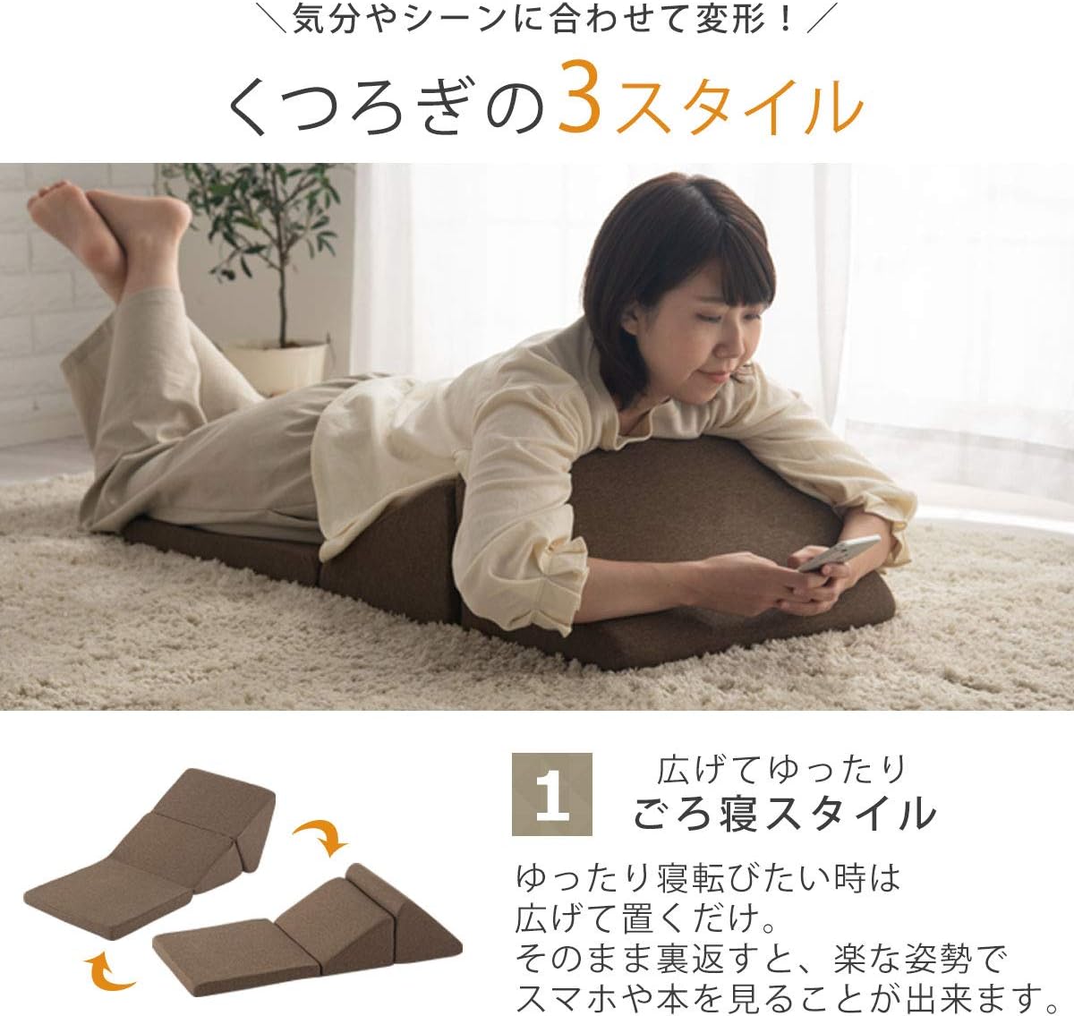 大きめサイズで体を支えるごろ寝クッションは、横になったり座ったり、使い方自由自在。