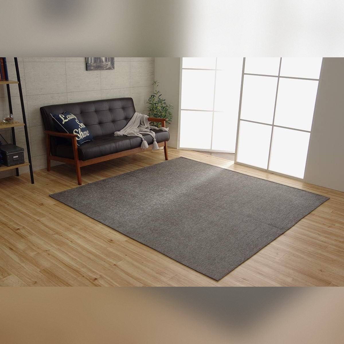 185×185cmの程よいサイズ感で、リビングやワンルームにも使いやすい一枚です。